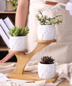 This simple yet beautifully elegant set of three owl shaped succulent/cactus planters and their stepped, 3-tier, bamboo tree stand makes a fabulous addition to any home, garden or office decor! A perfect display piece for standing white, ceramic, owl pots, small cacti or succulents. As with most planters, these little owl planters each have a small hole in the bottom for drainage. It may be best to water your plants in the sink and let them drain before changing them to the stand. This Owl Wooden Tree display is made from high-quality materials and features clean lines and an elegant, modern design. This flower pot is ideal for sitting on window sills, desktops, kitchen or bathroom countertops and makes a great gift for any plant or animal lover! Due to the handmade nature of this product, there may be slight variations in painting details. Decorate any room in your home with this unique and charming bamboo shelf with an owl flowerpot. Wooden Owl Tree would make a beautiful birthday, shower or wedding gift! OUR GUARANTEE We are confident that we offer some of the best products on the market. Therefore, we provide a 30-day guarantee. We will make every effort to ensure that you are completely satisfied with your purchase. Online shopping can seem daunting. We want you to know that there is absolutely zero risk of purchasing something. We won't make it difficult if you don't love it. We offer email and ticket support 24 hours a day, 7 days a week. If you require assistance, please contact us. Please contact customer service if you have any problems with your purchase.